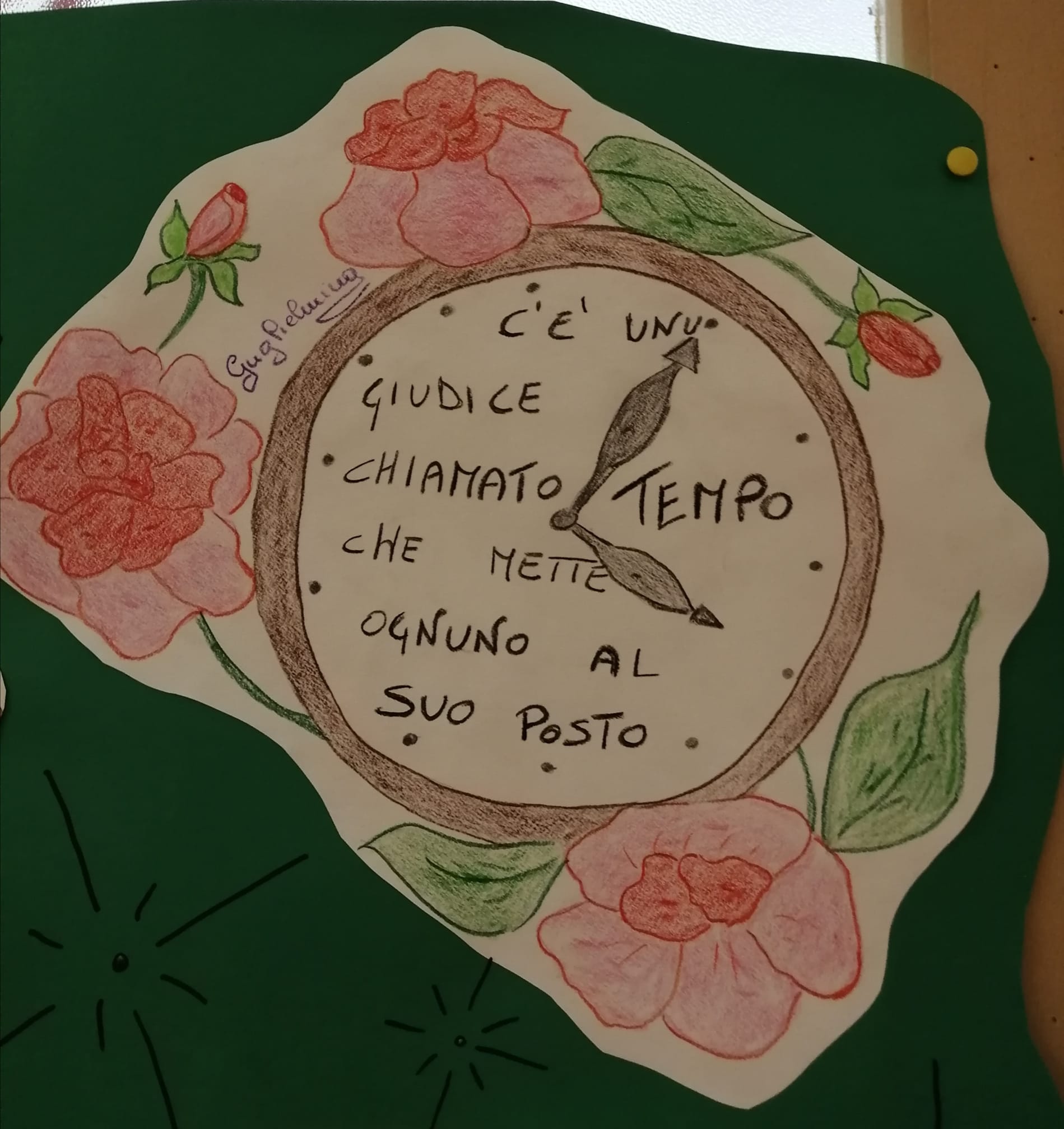 Durante l’ultimo incontro abbiamo creato un grande cartellone con le foto di tutti i momenti vissuti insieme e lo abbiamo appeso nel salone comune dove tutti lo possono vedere e ricordarsi della bella esperienza fatta assieme.