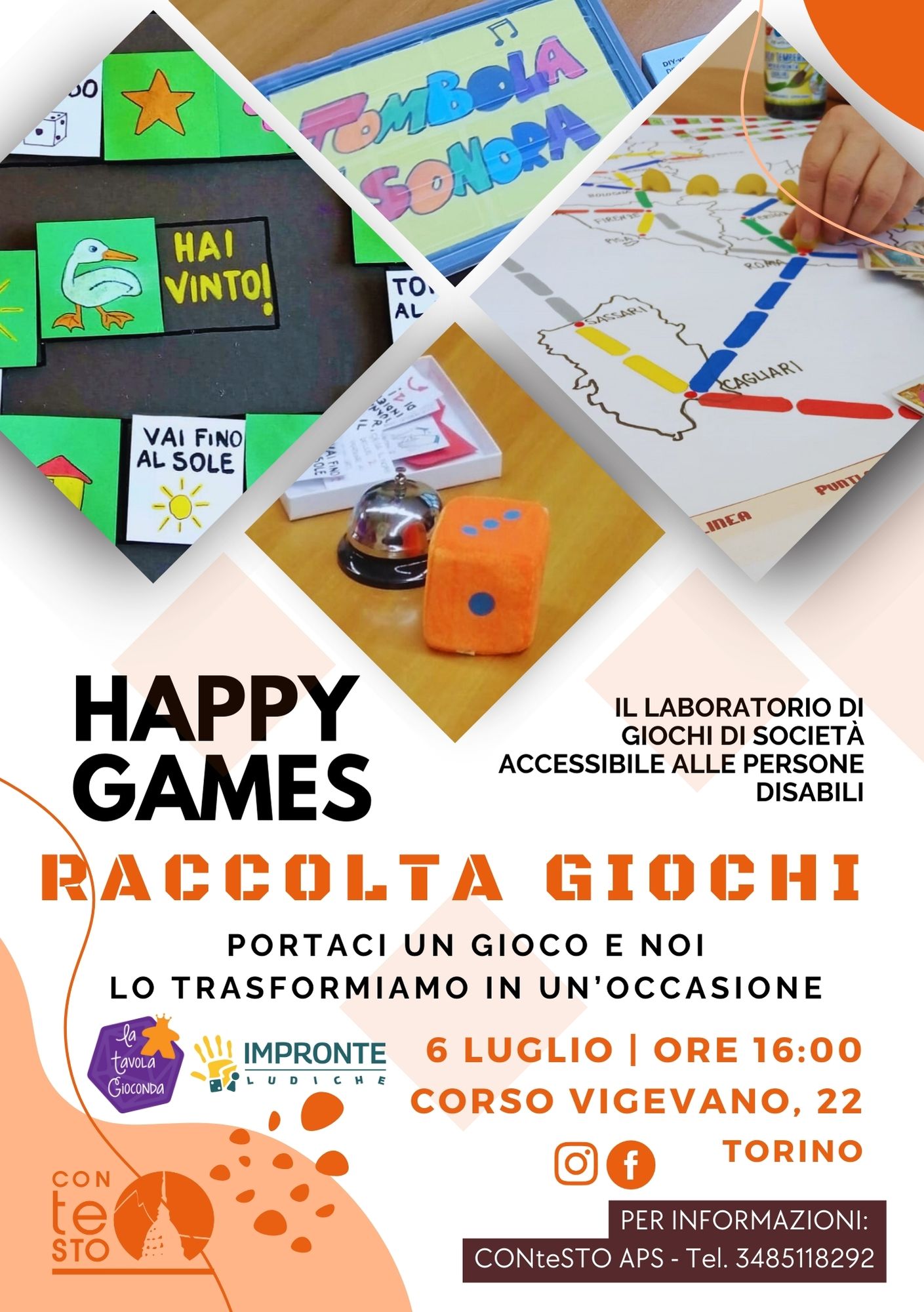 CONteSTO APS, in collaborazione con La Tavola Gioconda e Impronte Ludiche, organizza una giornata a porte aperte di “Happy Games“, un laboratorio di giochi di società riadattati e resi accessibili alle persone disabili.