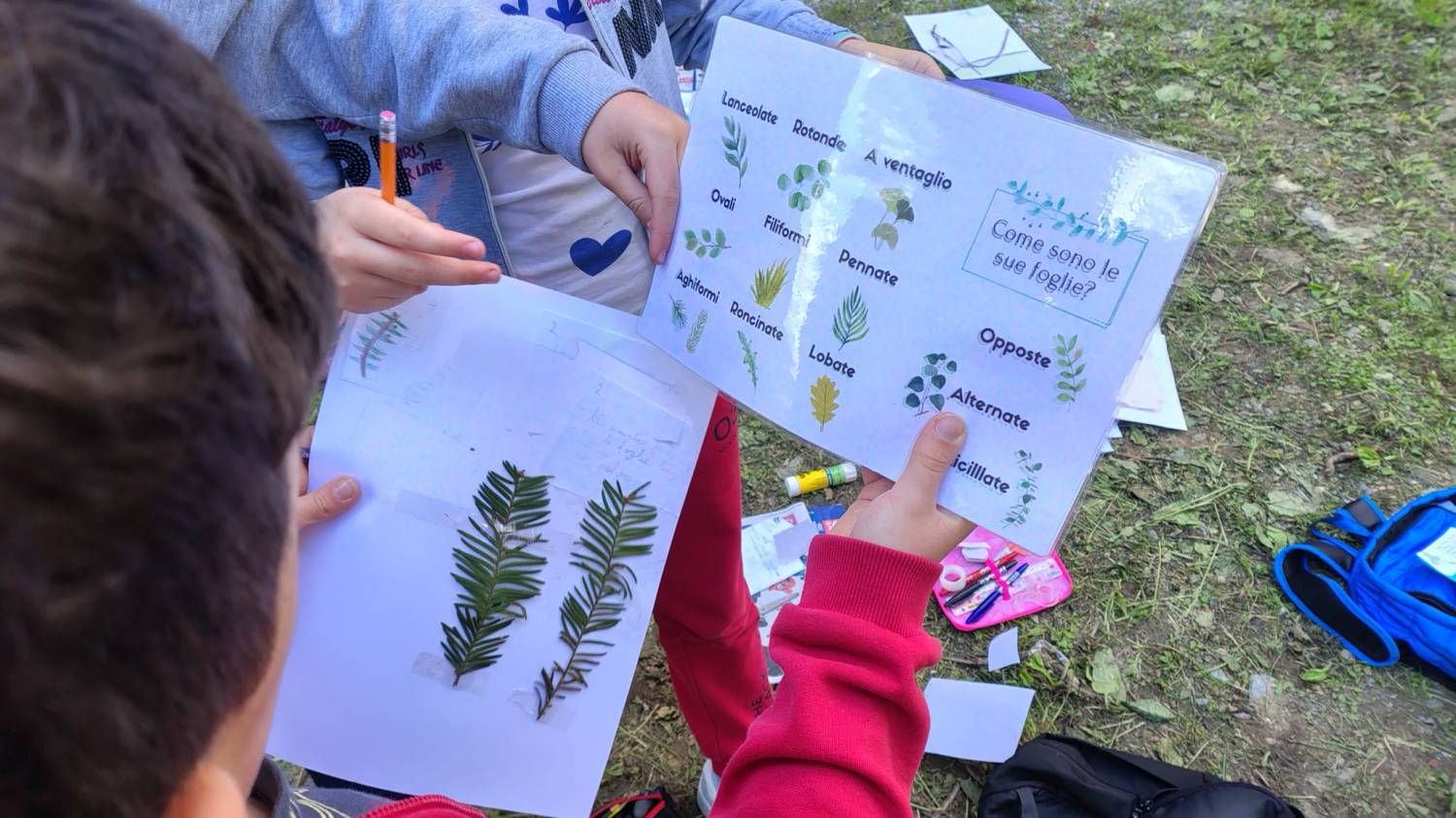 Nel secondo incontro, invece, i campioni essiccati vengono classificati e montati su cartoncini, con descrizioni e disegni. I lavori finali sono condivisi in una “mostra botanica”, dove i bambini diventano guide per i compagni.