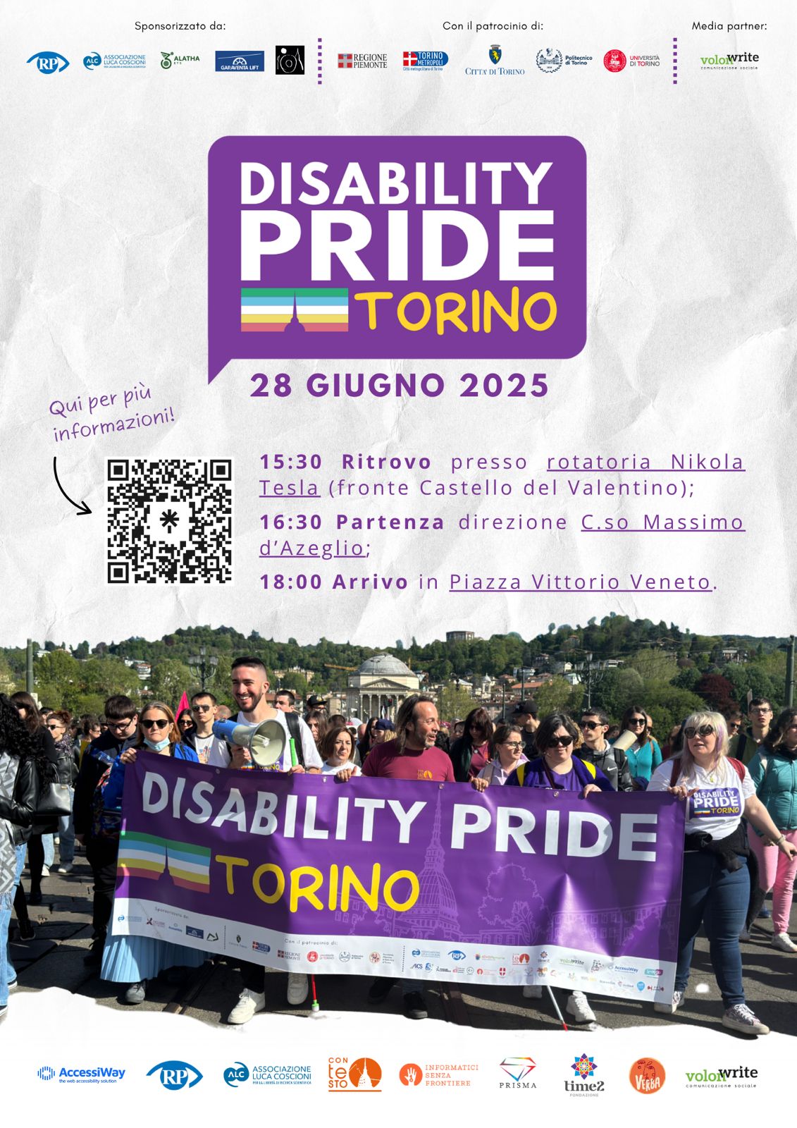 Per ulteriori informazioni: Marco Berton – Ufficio Stampa Disability Pride Torino per Associazione Volonwrite – Tel. 3402679727 – Mail: disabilitypridetorino@gmail.com